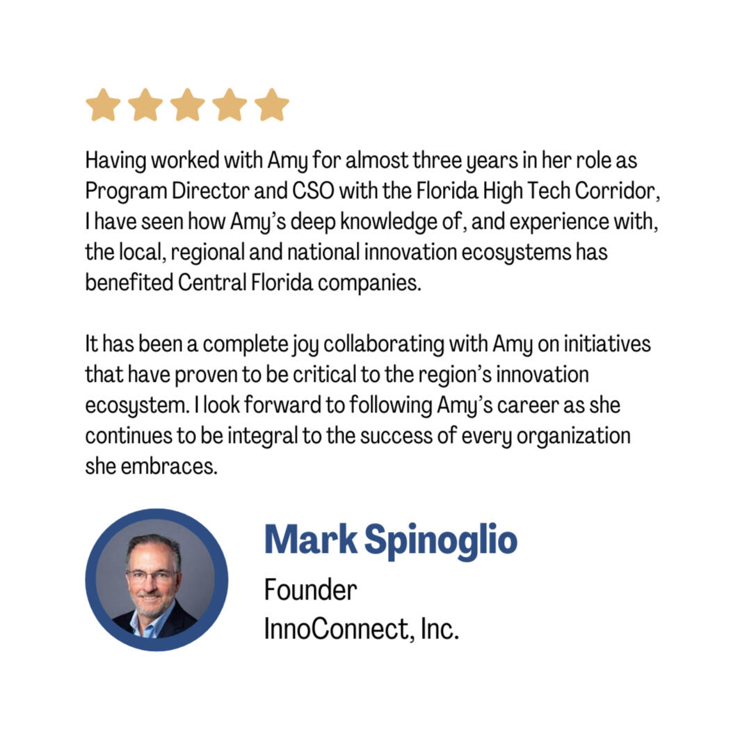 Over the last two decades, I have worked in all aspects of the innovation ecosystem from leading R&D in entrepreneurial startups to building academic incubator labs to setting strategy and scaling state-wide initiatives with multi-million-dollar budgets.After 3 years of implementing best practice programs and incredible growth in my regional ecosystem, I've refined scalable methods to share with you.I'm taking everything I learned and boiling it down to make it easy for other ecosystem builders to create impact faster and with more intention.Now I run a small consultancy that teaches ecosystem builders how to accelerate regional innovation, develop the strategies and stories to sustain it, and restore themselves and their communities.When I'm not working, I'm an angel investor, a mentor to underestimated innovators and you’ll often find me on long walks, on park picnics with my sweet family, trying to learn pickleball and planting succulents.